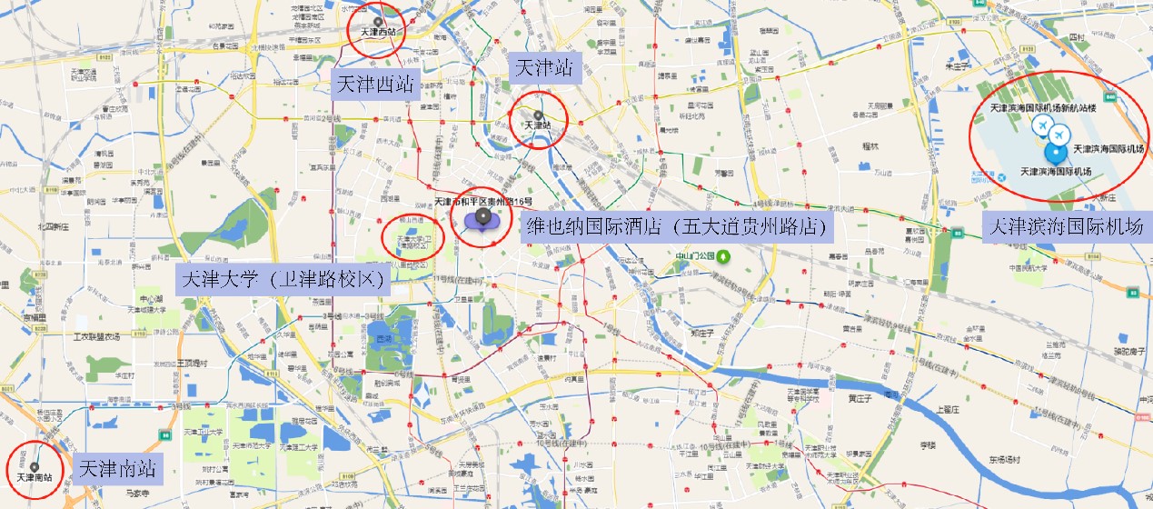 4.天津南站→维也纳国际酒店(五大道贵州路店),打车约40分钟,费用约60元。