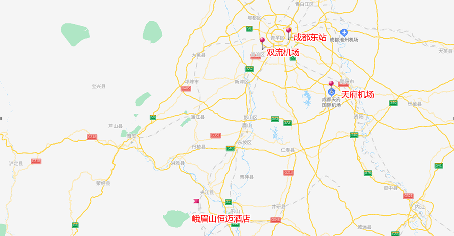 2.双流机场→成都东站→峨眉站/峨眉山站→峨眉山恒迈酒店