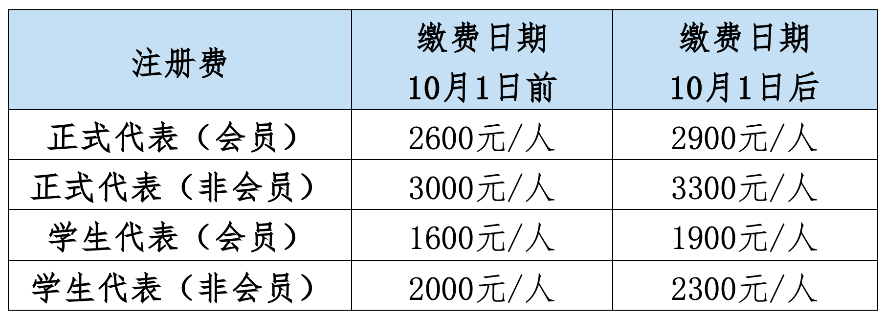注册费由学会统一管理,参加分会场的代表请注册成都主会场,并选择第十三分会场。以下为成都主会场会议注册费相关信息,分会场不另收会议注册费。