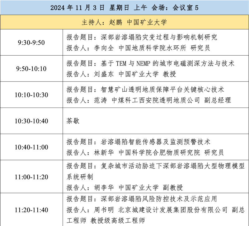 四、会议日程安排 专题报告一:深地能源开发存储与安全 专题报告二:深部岩溶塌陷精细探测与防控 专题报告三:深地科学前沿论坛与高质量期刊 专题报告四:深地空间水文过程与大数据专题学术研讨会 专题报告五:深地建模与深时大数据 专题报告六:地下存储与深地碳废处置 专题报告七:深地未来产业发展论坛暨可持续发展议程创新示范区建设分会场 专题报告八:青年人才与研究生论坛 五、注册缴费信息