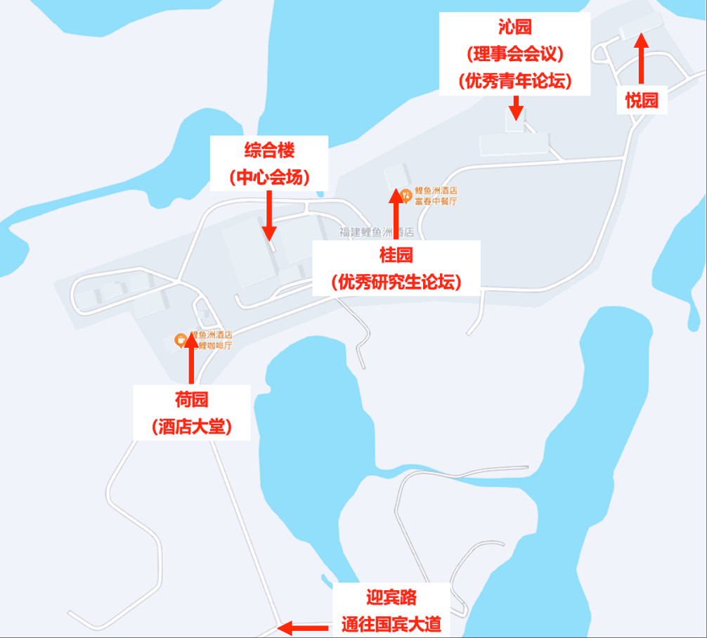 2. 住宿安排:注册缴费后,酒店预定将根据参会专家填写的住宿登记信息由会务组统一预留房间并办理入住福建鲤鱼洲酒店或梅园酒店(福州大学城店)。梅园酒店有专车接送往返鲤鱼洲酒店(会议地点),车程约4公里、15分钟。