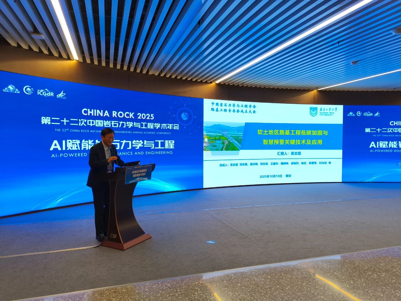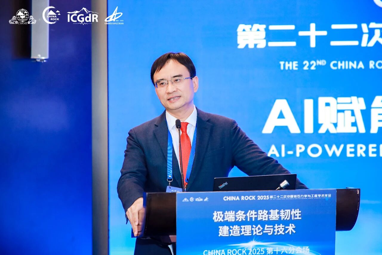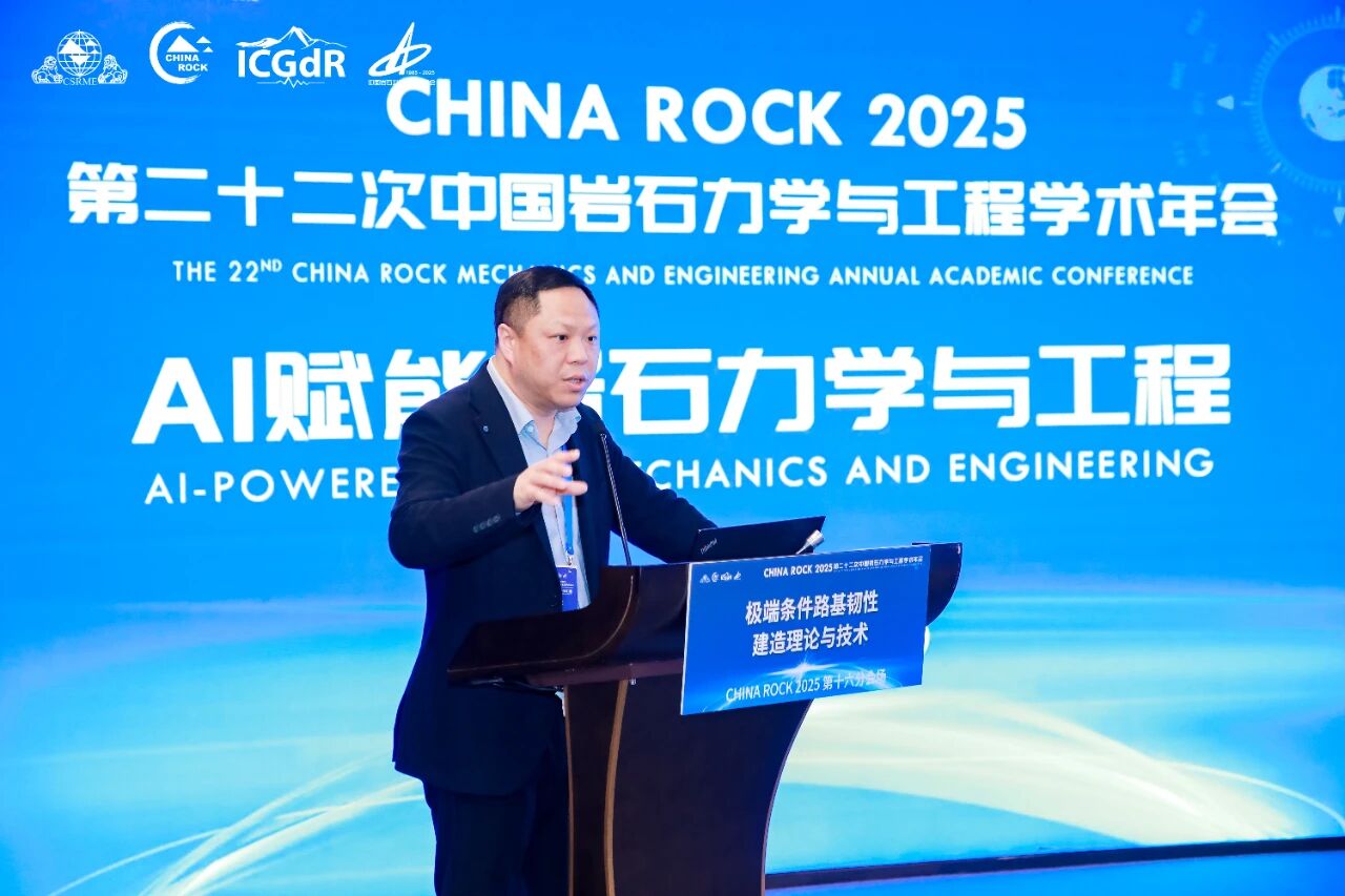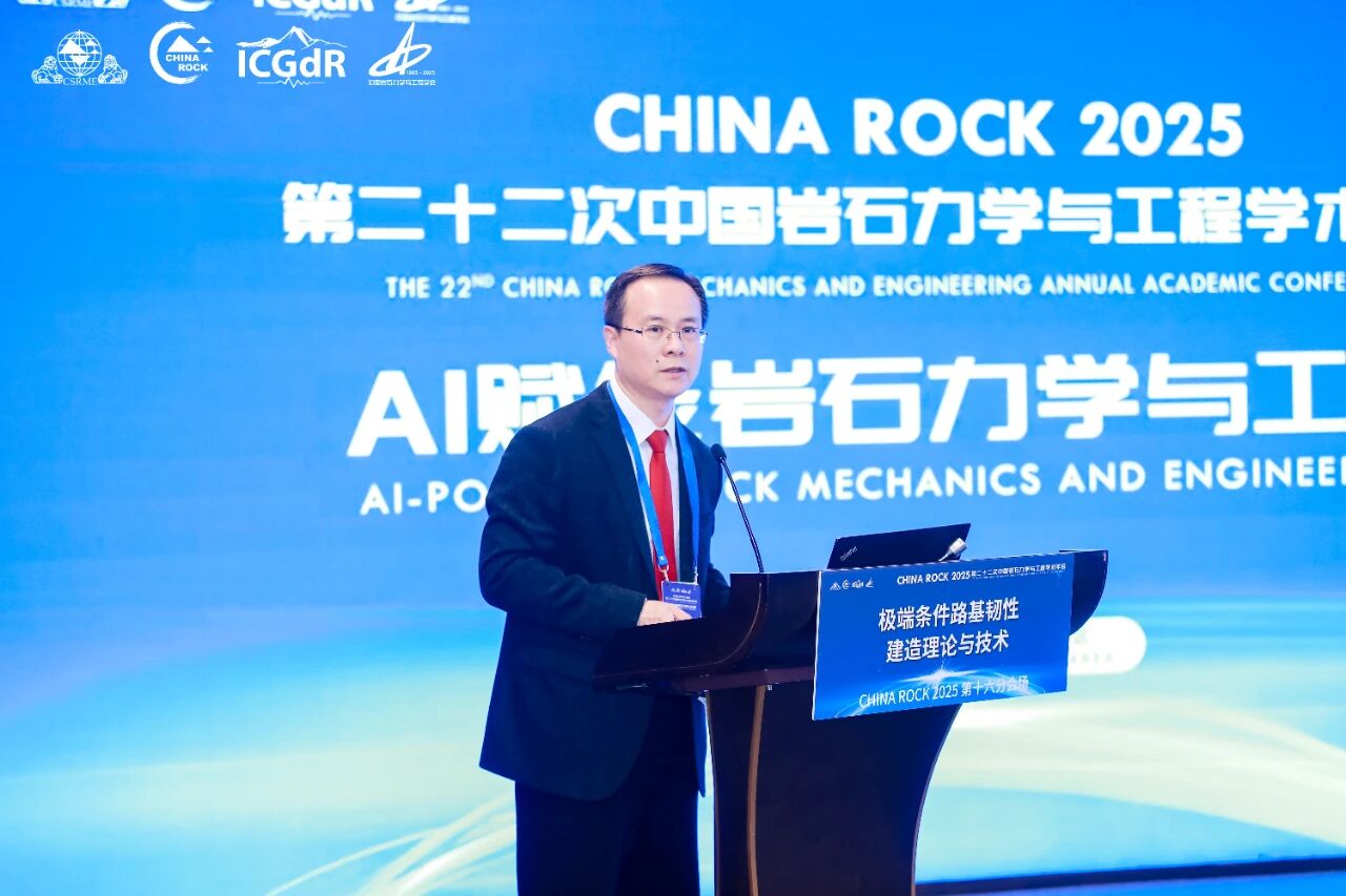 学会党委书记、理事长何满潮院士到会致辞,他指出,路基工程是交通基础设施建设的重要组成部分,对于保障交通运输的安全、高效运行具有关键作用,他表示,当前,随着“一带一路”倡议的实施和“交通强国”国家战略的推进,路基工程专业委员会的成立恰逢其时,这既是响应国家交通强国战略的必然要求,也是推动岩石力学学科向交通领域纵深发展的重要举措。 学会党委委员、秘书长景海河教授宣读批复文件,经第十届理事会第二次党工委会议审议,任命崔新壮为党的工作小组书记,陈建兵、张炯、付伟、顾凡、叶帅华、刘凯文、包卫星、时洪斌同志为小组委员。 作为专业委员会依托单位,山东交通学院党委委员、副校长李秀领教授表示,学校将全力保障专委会日常运行。山东交通学院科研处处长李晋教授介绍了专业委员会筹备工作情况。中国岩石力学与工程学会路基工程专业委员会由山东大学、山东交通学院共同发起,于2025年4月由中国岩石力学与工程学会批复同意成立,秘书处设于山东大学。 会议审议通过了《中国岩石力学与工程学会路基工程专业委员会工作条例》,并经无记名投票选举产生了第一届委员会。崔新壮当选为主任委员,郑俊杰、王军、蔡德钩、肖军华、李晋、王新泉6人当选为副主任委员,李晋当选为秘书长,张炯、贾雪娜、张小宁当选为副秘书长。 此次大会吸引全国100余所高校、科研院所及企业的200余名会员代表参会。新当选主任委员、重庆大学崔新壮教授承诺,专委会将聚焦学术交流、关键技术攻关、人才培养与成果转化,为路基工程技术革新与交通强国建设贡献力量。 随后举办的CHINA ROCK 2025第二十二次中国岩石力学与工程学术年会第十六分会场暨第一届路基工程学术大会以“极端条件路基韧性建造理论与技术”为主题,安排18个学术报告,邀请多领域专家分享前沿成果,还在山东交通学院、枣庄学院等5所高校设置卫星会场,线上参会6195人。为促进路基工程领域 “产学研用” 深度融合,还设置了企业展示环节,山东金曰交通发展集团有限公司、欧美大地仪器设备中国有限公司、济南运达检测设备有限公司、山东华鉴工程检测有限公司、江苏鑫泰岩土科技有限公司等企业受邀参展。 东南大学章定文教授围绕“多年冻土区既有公路路基变形的修复技术初探”,解析冻土区路基变形诱因与修复技术原理。 同济大学肖军华教授以“长期服役高速铁路路基性能演变研究”为题,分析高铁路基性能衰减规律与实测评估方法。 南京工业大学吴志坚教授阐述“软土地区路基低碳加固与智能监测预警关键技术”,介绍低碳加固材料研发与监测系统应用。 中国科学院地质与地球物理研究所李志清研究员分享“磷石膏固废路用资源化关键技术与应用”,详解团队研发的磷石膏改良路基技术,推动路基工程低碳化与固废资源化转型。 重庆大学崔新壮教授结合黄河流域生态保护要求,以“黄河流域路基绿色智能建造与韧性提升”为题提出技术路径与韧性方案。 李晋、袁炳祥、于荣喜等13位专家还围绕路基智能压实、固废利用、邻近既有线路基加固等方向作报告,覆盖路基工程全应用场景。