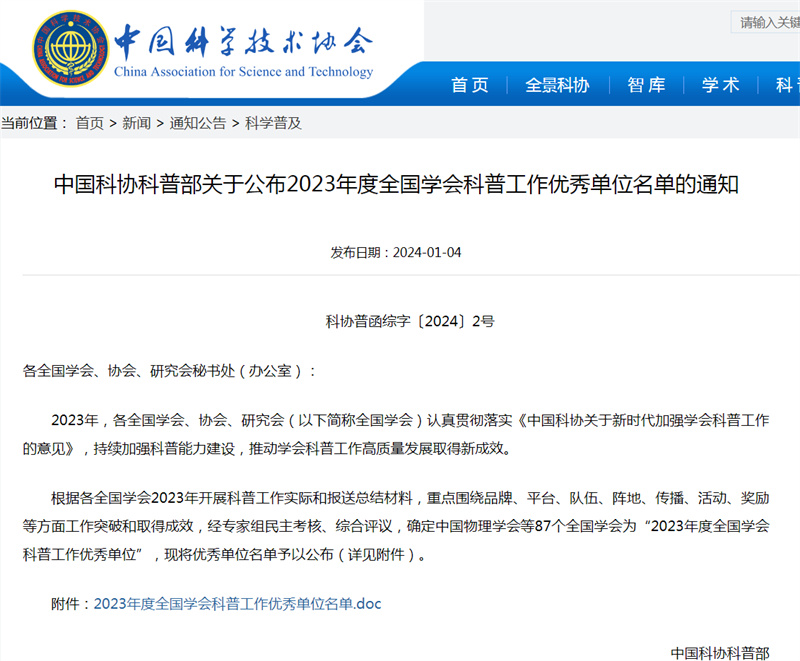 日月其迈,时岁盛新。展望2024,学会科普工作将继续以"加强国家科普能力建设、构建社会化工作大格局"为目标,将充分发挥组织优势和人才优势,加强保障,壮大科普人才队伍,积极动员,扎实开展各类科普活动,丰富科普供给、创新传播方式,为更多人打开科学大门。