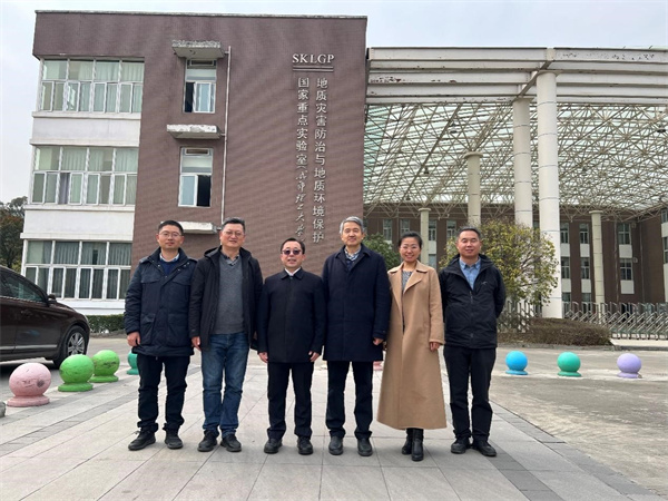 专委会秘书长董秀军以及胡伟教授、陈国庆教授、曾鹏教授、王文松教授陪同参观地质灾害防治与地质环境保护国家重点实验室,介绍行业领域先进自主创新科技成果及科研装备,现场考察后由李天斌教授主持座谈交流。