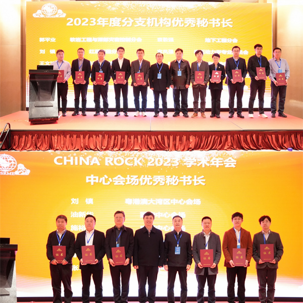 为表彰先进,树立典型,强化示范引领作用,对软岩工程与深部灾害控制分会、地下工程分会、红层分会等10个优秀分支机构秘书长和CHINA ROCK 2023 中心会场优秀秘书长进行了表彰。
