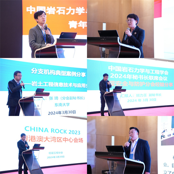 青年工作委员会、工程实例专业委员会、岩土工程信息技术与应用分会和工程安全与防护分会等4家2023年度优秀分支机构代表以及红层工程分会和矿山采动损害与生态修复专委会等2家CHINA ROCK 2023学术年会优秀中心会场代表分别分享典型案例。