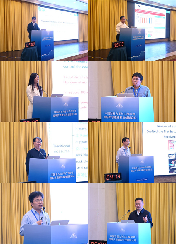 学会党委委员、清华大学杨强教授,学会党委委员、副理事长,中国地质大学(北京)徐锡伟教授,国际岩石力学与岩石工程学会(ISRM)副主席、同济大学张丰收教授,中国石化石油工程技术研究院原院长路保平研究员,学会采矿岩石力学分会理事长、第一届ISRM科学成就奖获得者、中国矿业大学(北京)左建平教授,北京工业大学路德春教授,ISRM中国国家小组副主席、南京大学刘春教授,学会国际事务秘书处副秘书长、北京科技大学席迅教授等9位院士、专家到会指导。9位科技创新论坛报告人及200余位同行代表参加会议。学会代理秘书长杨军教授主持会议。 国际奖项遴选科技论坛安排了9场学术报告,内容涉及能源储库围岩力学机理、地下工程灾害防控、复杂条件下切顶留巷无煤柱开采及围岩稳定、高位崩塌落石超高大能级柔性拦挡结构、岩石动力测试、地下工程灾害防控与智能建造和砂卵石地层盾构隧道开挖等方面。 科技创新论坛将传统的小规模闭门式评审,调整为公开化大规模公众评审,各项目之间充分交流,相互学习,打破了科技成果之前的传播壁垒,旨在提升科技创新成果和科学数据开放共享水平,增进科技工作者之间和各高校、科研院所及企业之间的开放、信任与合作。