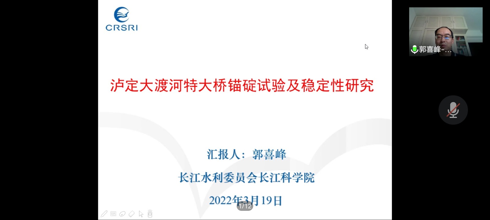 大会还邀请了学会理事--长江科学院郭喜峰高工作了"泸定大渡河特大桥锚碇试验及稳定性研究"。报告结合泸定大渡河特大桥工程,介绍了隧道锚测试方法、测试项目和测试成果分析等,为泸定大渡河特大桥锚碇工程建设提供了重要设计依据。