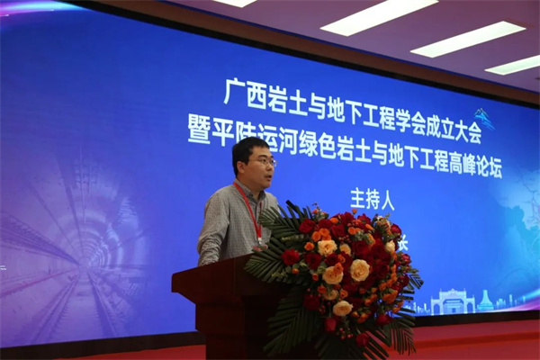 马少坤在发言中表示,学会作为自治区学术组织,将以广西岩土和地下工程的高质量发展为使命担当,加强党建引领,建设专业智库,强化东盟交流,为岩土与地下工程的科研教育工作者搭建合作交流的学术平台。为建设新时代社会主义壮美广西贡献学会的科教力量。