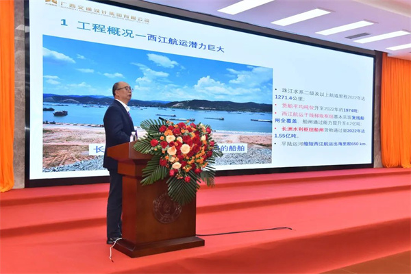 广西交通设计集团副总工程师、教授级高工米德才作了题为“平陆运河绿色智慧建造中的岩土问题与对策”的报告,指出要通过高质量高效率勘测设计科研来支持平陆运河工程计划推进,通过精细化勘察解决复杂地质问题,要高度重视航道开挖对既有桥梁基础稳定的影响与防护工作以及超大土石方堆存场的稳定与生态防护工作。