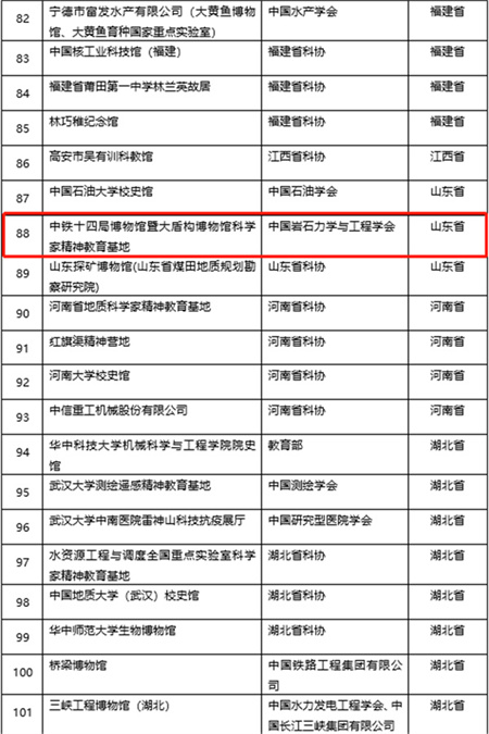 5月30日,中国科协、教育部、科技部、国务院国资委、中国科学院、中国工程院、国防科工局联合发布2023年度科学家精神教育基地认定名单,由我学会推荐,依托于水下隧道工程技术分会申报的"中铁十四局博物馆暨大盾构博物馆科学家精神教育基地"获得认定。