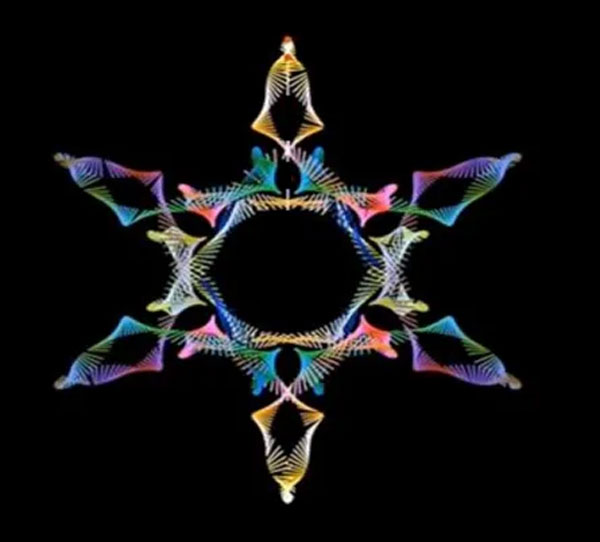 何院士用一个艺术图案解释这一现象。图案是四节棍的每一个节点做圆周运动形成。在研究破坏时,同样也与圆有关系。从这个例子中,何院士表示,科学是有艺术美感的,科学和艺术总是融合在一起,两者融合之美值得体会。科学人生的价值之美