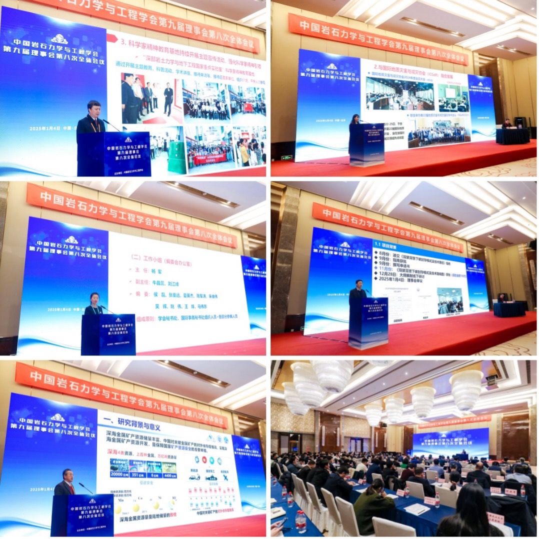 2025年1月4日,中国岩石力学与工程学会第九届理事会第八次全体会议在北京召开。会议由学会党委书记、理事长何满潮院士主持。