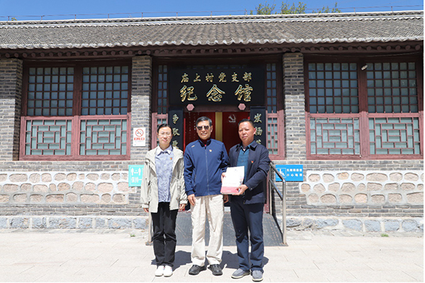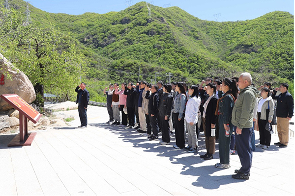 参观结束后,全体党员重温入党誓词,铮铮誓言回响在耳畔、牢记在心中,缅怀先烈守初心,赓续血脉担使命。 在纪念馆前,学会党委书记、理事长何满潮院士向庙上村党支部赠送了学会编辑出版的《礼赞·科学家精神》系列图书。 在学会党委的指导下,本次活动聚焦深化共建单位交流合作,强化党支部队伍凝聚力和战斗力,聆听革命先辈的故事,从红色基因中汲取奋斗力量,有效推动党建与业务融合发展,在“重走红色征途”黄花城水长城红色徒步拓展中,通过“破冰融合”互动方式打破壁垒,快速建立协作默契,形成团结合作、积极奋进的活动场景,树立攻坚克难的精神和顽强斗争的意志,以这种精神激励大家不忘初心,牢记使命,为服务岩石力学科技工作者、服务国家重大工程建设、建设世界一流学会贡献力量。
