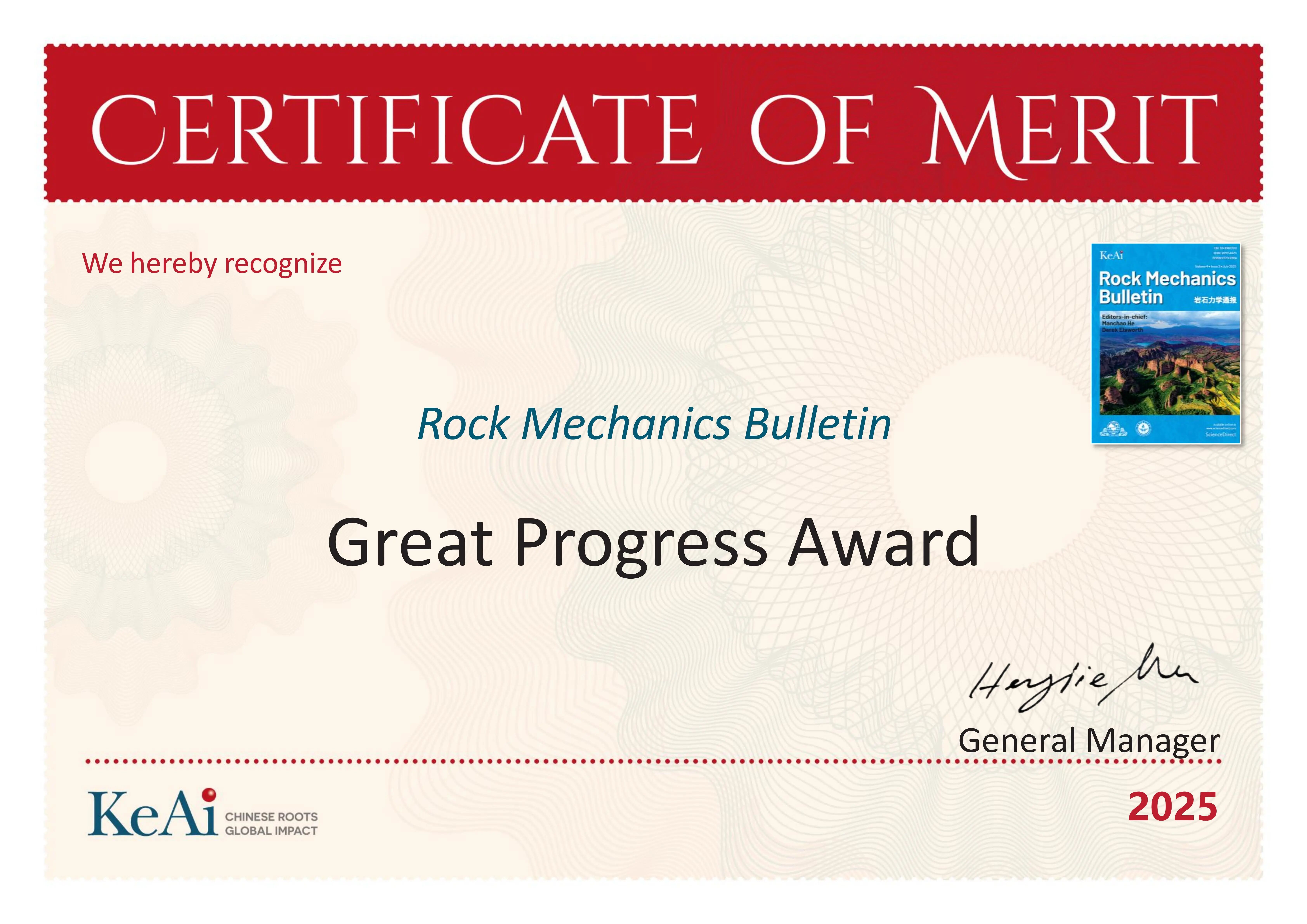在此,我们谨向长期关心和支持Rock Mechanics Bulletin发展的编委团队、审稿专家、作者、读者以及学界同仁致以最诚挚的谢意!这份荣誉属于每一位陪伴期刊成长的您。