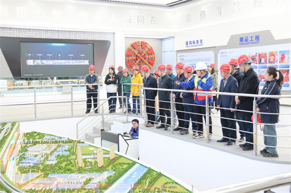 走进干净整洁的项目施工现场,首先吸引我们视野的是先进的智慧管理指挥中心,一个数据集成大屏映入眼帘,两侧副屏分别展示项目人员、质量、智能设备管理及安全隐患画面。项目用科技助力施工生产,建立双重预防体系的智能化提醒和北斗自动化监测营业线,采用AI抓拍、智能安全帽、车辆定位、来车预警、门式起重机状态监控等手段,指导现场安全施工,确保生产质量。屏幕上,不同的画面既能俯瞰整片工地施工动态,又可以拉近观看施工细节。打开“施工图册”,可以调出施工过程中不同模块的画面,能够直观地了解工程进度和工程实况。