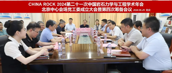 2024年6月29日下午,CHINA ROCK 2024第二十一次中国岩石力学与工程学术年会北京中心会场党工委成立大会暨第四次筹备会议在北京召开,受学会党委委托,学会党委副书记杨晓杰教授,党工委书记、代理秘书长杨军教授,常务副秘书长牛晶蕊博士出席会议。软岩工程与深部灾害控制分会理事长刘泉声教授、锚固与注浆分会理事长马栋正高、岩土地基与结构工程分会理事长朱春明正高三位北京中心会场主席,北京建筑大学戚承志教授、北京工业大学路德春教授、清华大学刘晓丽教授等卫星会场代表,各承办单位秘书长及相关人员参加会议。会议由北京中心会场党工委书记、轮值主席孙晓明教授主持