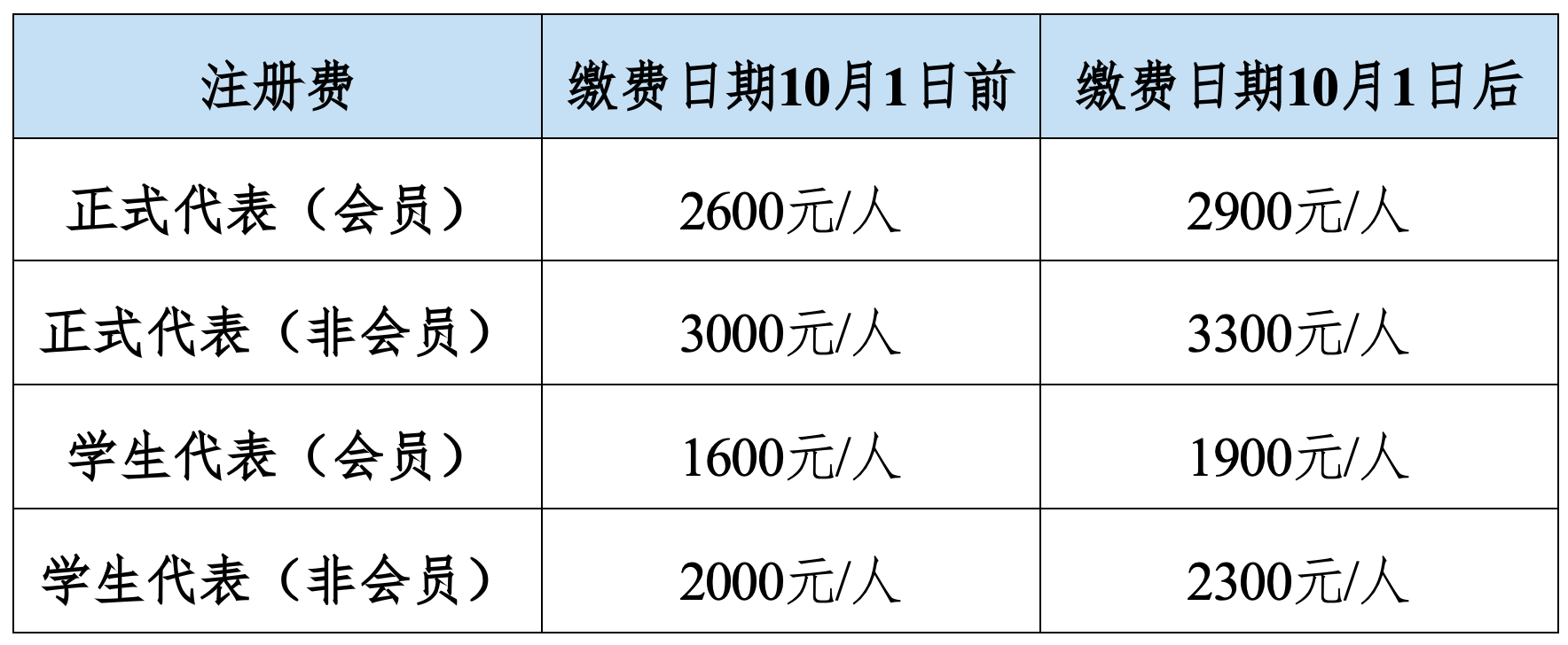 注册费由学会统一管理,参加分会场的代表请注册成都主会场,并选择第十五分会场。以下为成都主会场会议注册费相关信息,分会场不另收会议注册费。