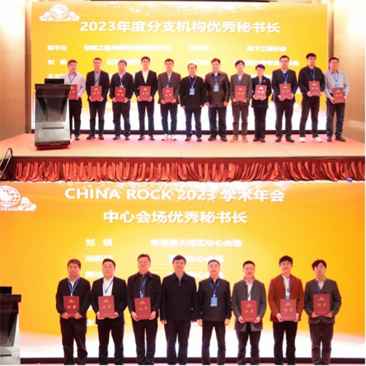 为表彰先进,树立典型,强化示范引领作用,对软岩工程与深部灾害控制分会、地下工程分会、红层分会等10个优秀分支机构秘书长和CHINA ROCK 2023 中心会场优秀秘书长进行了表彰。 青年工作委员会、工程实例专业委员会、岩土工程信息技术与应用分会和工程安全与防护分会等4家2023年度优秀分支机构代表以及红层工程分会和矿山采动损害与生态修复专委会等2家CHINA ROCK 2023学术年会优秀中心会场代表分别分享典型案例。