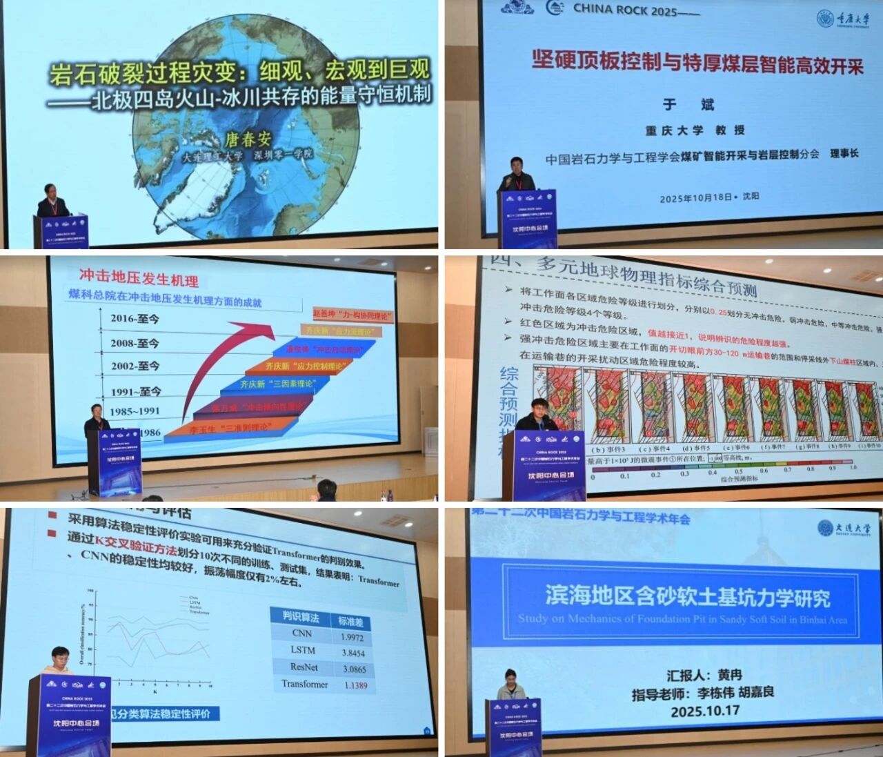 本届学术年会以“人工智能驱动的岩石力学发展与深部灾害防控”为主题,聚焦深部矿山动力灾害智能监测预警、岩石力学理论创新与人工智能深度融合矿山及岩土工程灾害精准防控技术等议题。沈阳中心会场共安排了22场专家报告,围绕煤矿冲击地压防治、深部资源开采、重大岩土工程安全等领域展开了研讨。19日下午的研究生论坛上,来自东北大学、辽宁大学、大连大学、辽宁工程技术大学、沈阳建筑大学等院校的20名硕、博士研究生汇报了自己的最新成果。