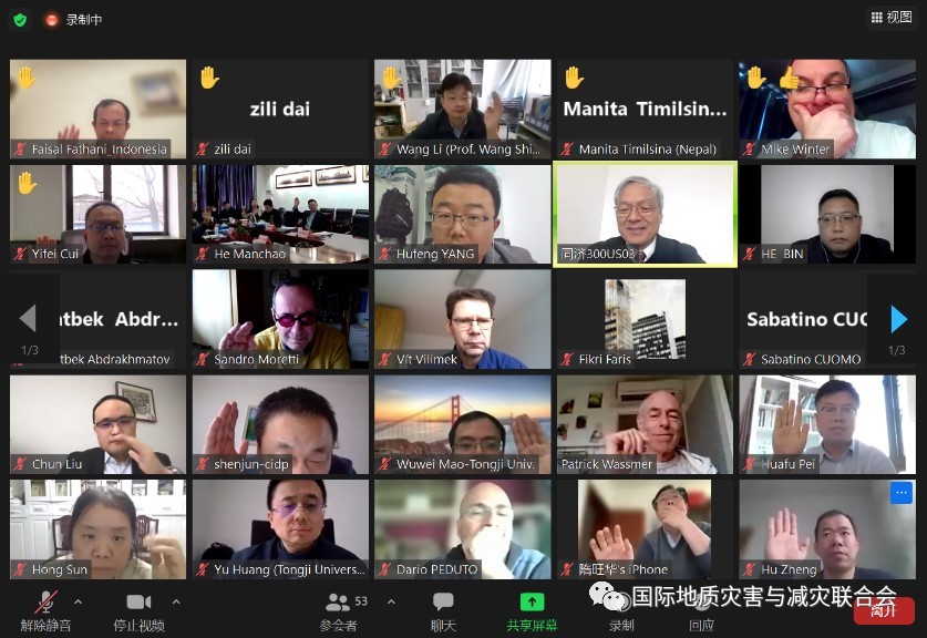 北京时间2022年4月1日下午,国际地质灾害与减灾协会(ICGdR)通过视频会议方式召开了2022年度第一次理事代表大会。ICGdR主席、各委员会主席、理事、秘书处等来自日本、意大利、中国、法国、吉尔吉斯斯坦、尼泊尔、韩国、印度尼西亚、捷克、英国等10个国家的共56名国际专家出席会议,会议由ICGdR主席Prof. Fawu Wang主持。在本次ICGdR理事代表大会上,中国岩石力学与工程学会党委书记、理事长何满潮院士代表我国学者提出了"国际对比研究计划(International Correlation Research Program):面向地震预测的跨断层测量(Cross-Fault Measurement for Earthquake Prediction)"这一重大科学计划倡议。