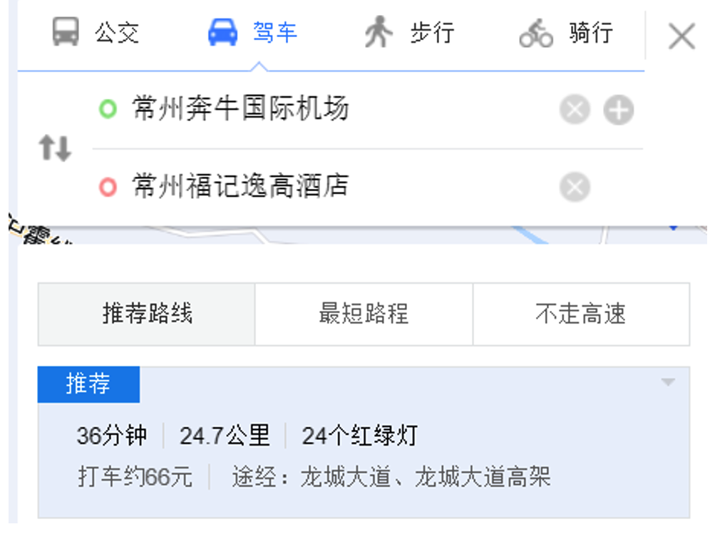 从奔牛机场到常州福记逸高酒店的详细交通指引