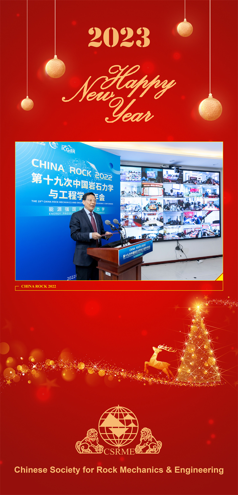 On this special occasion of the New Year 2023, on behalf of Chinese Society for Rock Mechanics and Engineering (CSRME) may I extend to you and your dear family my warmest greetings, wishing you a healthy, happy and prosperous New Year 2023!