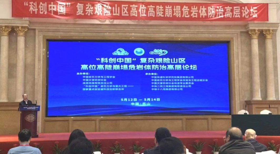 On May 13-14, the "Innovation China" high-level forum on the prevention and control of collapse risk rock mass on high-steep slopes in the complex and dangerous mountains was successfully held in Mount Emei, Sichuan. This forum is sponsored by the CSRME and "Innovation China" Rock Mechanics and Major Projects--State Key Laboratory Science and Technology Innovation Consortium and other units. Academician of the Chinese Academy of Sciences, Song Zhenqi of Shandong University of Science and Technology, and Chinese Society of Rock Mechanics and Engineering Vice President Li Xiao and other experts attended this forum. A total of 143 experts from 43 units including Chengdu-Kunming Railway Co., Ltd. participated in the forum.